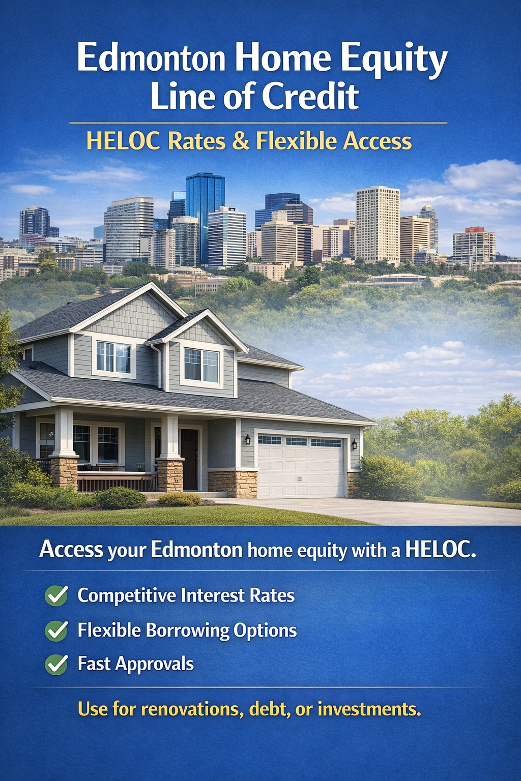 In Edmonton, a HELOC is becoming an increasingly popular financial option for homeowners who want flexibility in managing their finances. Instead of taking out a lump-sum loan, a HELOC provides ongoing access to funds, making it ideal for long-term projects or unexpected expenses. Mortgage Fusion’s Edmonton Home Equity Line of Credit program is designed to help clients unlock their home equity efficiently and responsibly.